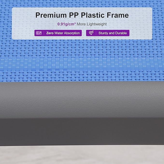 • The textilene fabric features breathability, quick-drying, waterproof, tear-resistant and supports a maximum weight of 400 lbs.