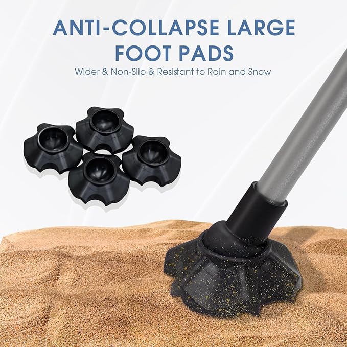 • Premium Durability & Stability: Crafted with aircraft-grade 7075 aluminum alloy, the frame achieves high strength-to-weight ratio. Reinforced with quad-leg base and triple-lock joints, it ensures 360° stability on uneven terrain. The 900D anti-tear Oxford fabric withstands 330lbs loads, paired with non-slip rubber feet for secure placement on wet grass or rocky surfaces