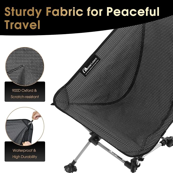 MOON LENCE Camping Chair Plus, Upgraded Comfort & Size, Still Compact and Lightweight, Folding Portable Chair for Backpacking & Hiking, 330Lbs Capacity, Gen 3 Plus (Onyx (Plus))