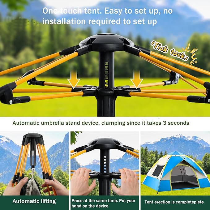 • 【Simple setup and quick disassembly】This tent is very easy to install and disassemble. Setting up this camping tent manually is easy and fun, it only takes about 1 minute to assemble. Take down is also easy and fast.