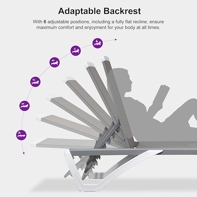 • With rust-resistant and non-deforming aluminum support rods and 6 adjustable positions, you can easily find your desired angle, including laying flat.