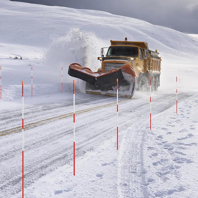• Durable Material: Crafted from robust fiberglass, our snow stakes bend and quickly return to their original shape. They are strong yet lightweight, making them easy to store when not in use.