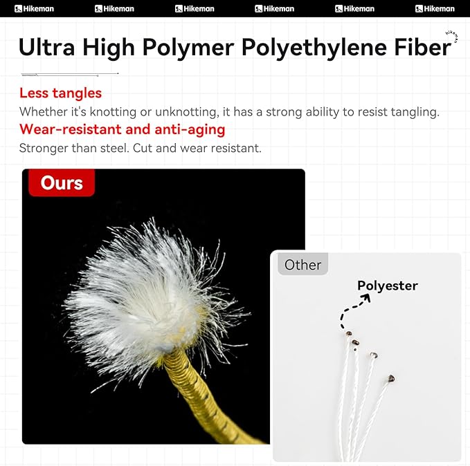 • 【EXTREMELY LIGHTWEIGHT】This guy lines is crafted from UHMWPE fiber material, making it exceptionally lightweight—weighing just 3g(0.1OZ)per meter on average—to minimize the load on your journey as much as possible