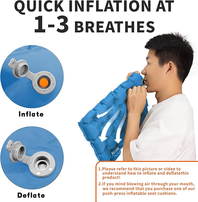 • Hold Air for A Long Time: The camping seat cushion has gone through strict quality testing, please use it correctly, close the valve, the cushion will not leak at all when inflated.