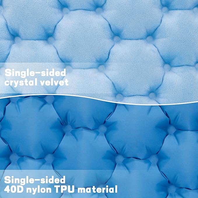 • Lightweight and Size: Weights approximately 0.25lb. Size 49.5*39.5cm. It quickly deflates and folds into a compact size, more comfortable travel without compromising comfort. Weight capacity 330 lbs. The interior adopts an electric welding pattern forming multiple air support lattices with multiple support points to evenly distribute pressure.