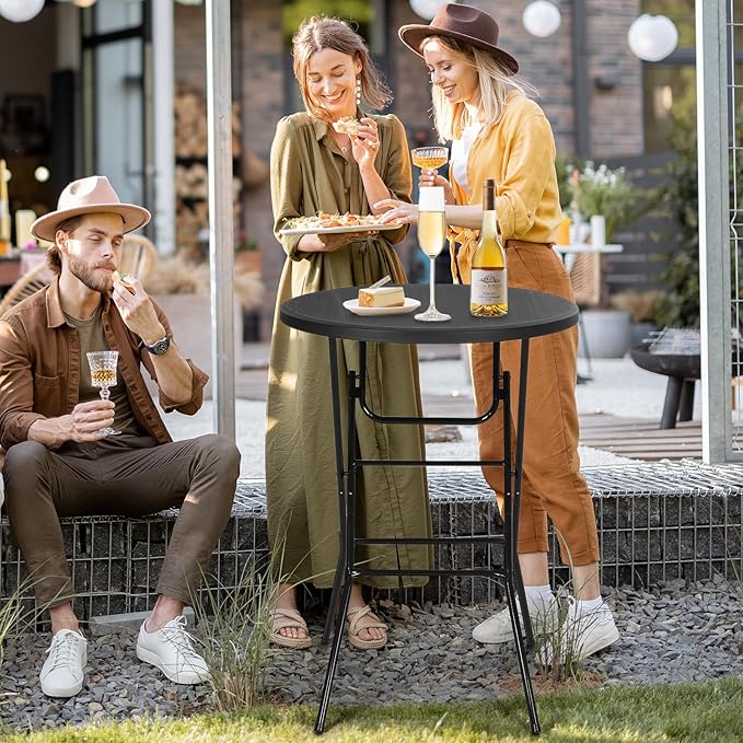 Nice C Plastic High Top Round Table, Portable Cocktail Bar Table with Detachable Legs, 31.5" Folding Tables, Waterproof Outdoor/Indoor Tables for Parties, Weddings, Camping, Backyard (Black, 2 Pack)