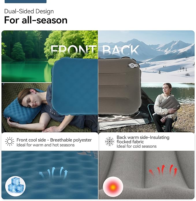 • Dual-Sided Versatility: The front cool side is smooth ice-silk fabric for warm seasons, delivering all-night cooling comfort. The back warm side is insulating fleece fabric for cold weather, retaining warmth on chilly nights. Promotes restful sleep anywhere, helping you wake refreshed and energized.