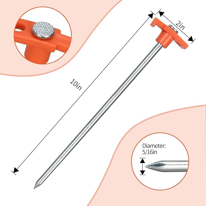 • 【Heavy Duty Stakes】- Tent stakes are made of high-quality material, completely get rid of the snapping or bending problem, and the sharp end makes it easy to penetrate hard or rocky ground.
