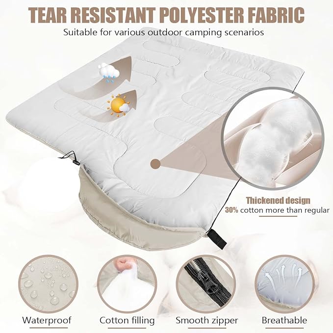 • Comfortable, durable and skin-friendly-100% polyester lining is skin-friendly and comfortable. High-quality polyester makes it durable. No matter how hard and rugged the ground is, you will feel comfortable. They are very spacious for any adult or child. It's easy to get in and out and turn around to find a comfortable sleeping position.