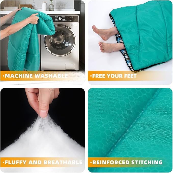 • PLENTY OF SPACE : Sleeping Bag Size 86.6 inch x 32.48 inch. Pack Weight is 4lbs, the compressed packing size is 11''-15.7'' and would take up less space. High-quality three zipper give you more comfortable camping experience.