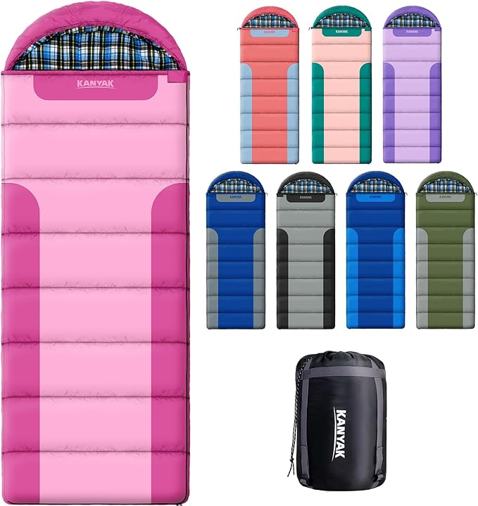 • SLEEPING BAG MATERIAL : Shell Material - 210T Anti-tearing Polyester Fabric which is waterproof and Breathable for optimal warmth and insulation to protect you from the elements. Lining Material - cotton flannel which is cosy and flexible to make you sleep well with KANYAK sleeping bag.