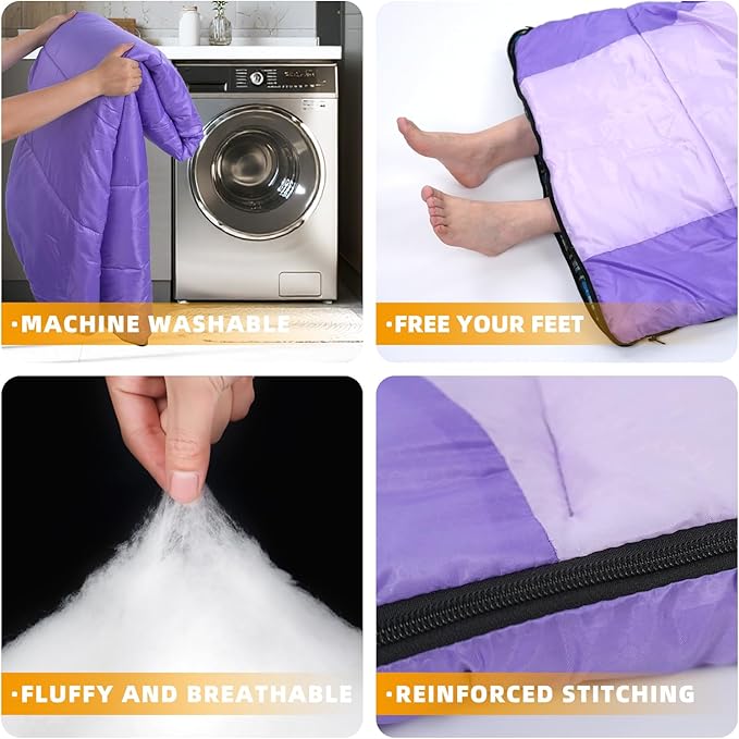• PLENTY OF SPACE : Sleeping Bag Size 86.6 inch x 32.48 inch. Pack Weight is 4lbs, the compressed packing size is 11''-15.7'' and would take up less space. High-quality three zipper give you more comfortable camping experience.