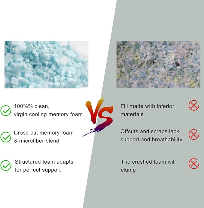 • Adjustable Firmness:The backpacking pillow is made of shredded memory foam mixed with ultralight fiber,you can ADD or REMOVE foam filling to suit your size,shape or sleep position.DO NOT PUT Shredded MEMORY FOAM IN WASHER OR DRYER.