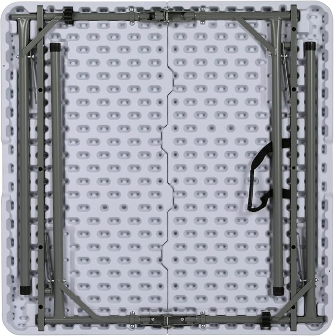 • 34" square folding table — portable, foldable design collapses in half for compact storage and easy transport. Upgraded ergonomic plastic handle with wider grip for comfortable carrying. Lightweight yet sturdy design ideal for indoor and outdoor use—perfect for events, parties, picnics, camping, tailgating and more. Easy storage, quick setup, and on-the-go convenience. 34" x 34" tabletop; 29.5" height; 40mm-thick durable plastic top; granite white color adds a stylish, modern touch to any space.