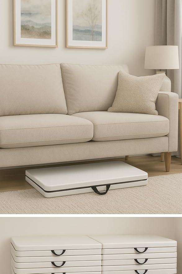 • No Assembly Needed – Ready to use out of the box—just unfold the legs and it’s good to go. No tools or setup required, making it a hassle-free option for home, events, or temporary workspaces. Folds flat for easy storage in closets or under beds—perfect for small spaces or apartments.