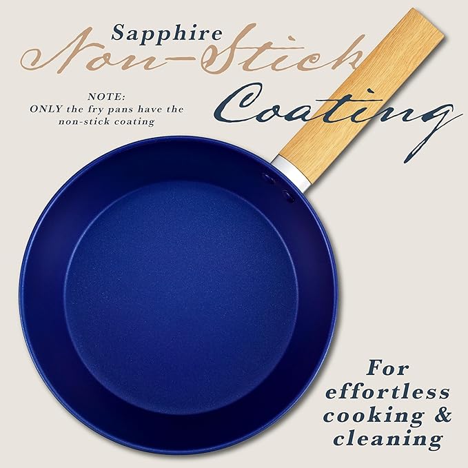 • Only frying pans in this set will have our own Sapphire Ceramic nonstick coating so you do not have to worry about food sticking to your pan.