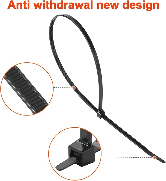 • 【Innovative Anti Withdrawal Zip Ties & Thicker Build】: Anti - withdrawal design with a base buckle for easy pre - fastening, pull tight when needed. Thicker than ordinary zip ties, boosting durability and hold. This cable ties ideal for bundling, keeping items secure.