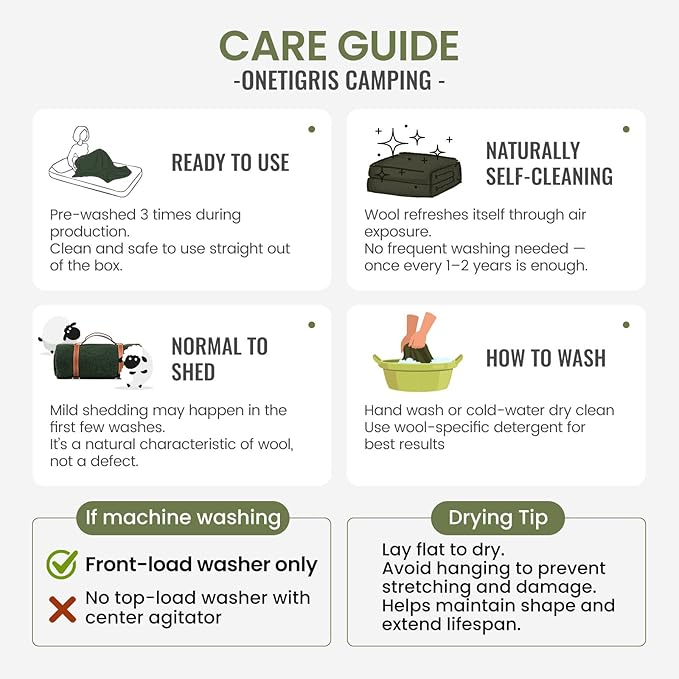 • Natural Wool, Warm and Reliable:Wool is a trusted natural fabric with inherent temperature-regulating properties, renowned for its warmth and breathability, naturally balancing your body temperature whether wet or dry.The OneTigris wool blanket is made with an ideal blend of 80% premium natural wool and 20% hypoallergenic synthetic fiber, retaining the comfort and warmth of wool while enhancing durability and wash resistance—for years of dependable use