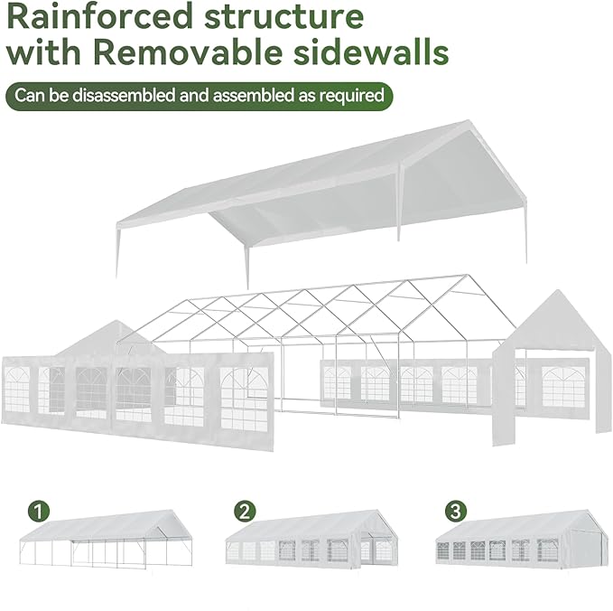 • ✅ Spacious & Versatile: Fits 8-12 people comfortably—perfect for weddings, birthdays,tailgates,farmers' markets,and camping.Each sidewall features clear PVC windows for airflow and natural light.