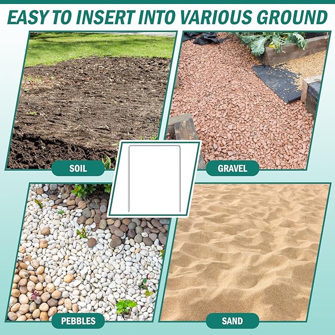 • Extended Length for Stability: the 8-inch length of each staple allows for deeper penetration into the ground, providing enhanced stability even in soft or windy area; Compared to ordinary 6-inch garden stakes, these staples excel in maintaining their hold