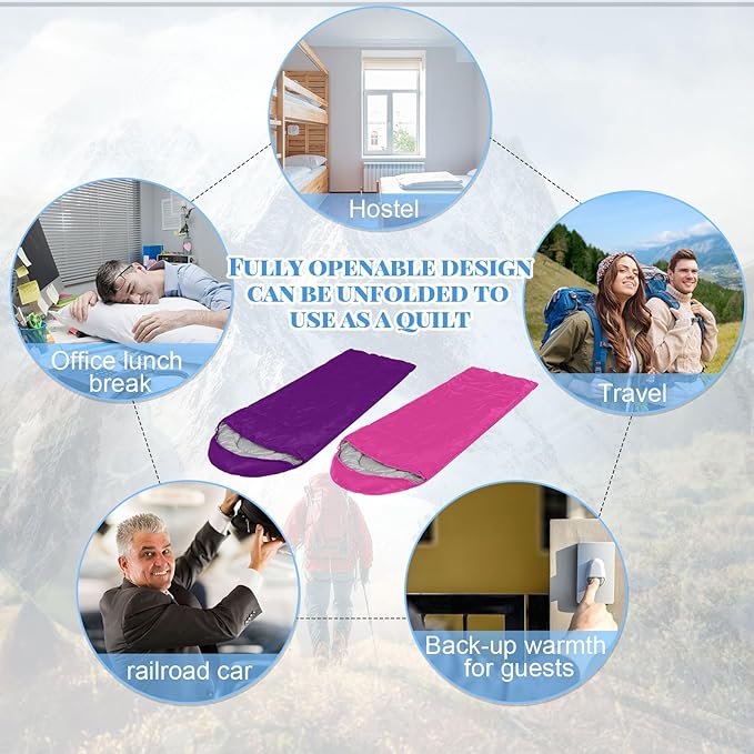 • Multiple Purpose: these compact sleeping bags are suitable for sleeping while camping, hiking, traveling, exploring, mountaineering, or you can unzip all zippers and use them as a comforter or blanket; You can also donate to the homeless and bring warmth to them