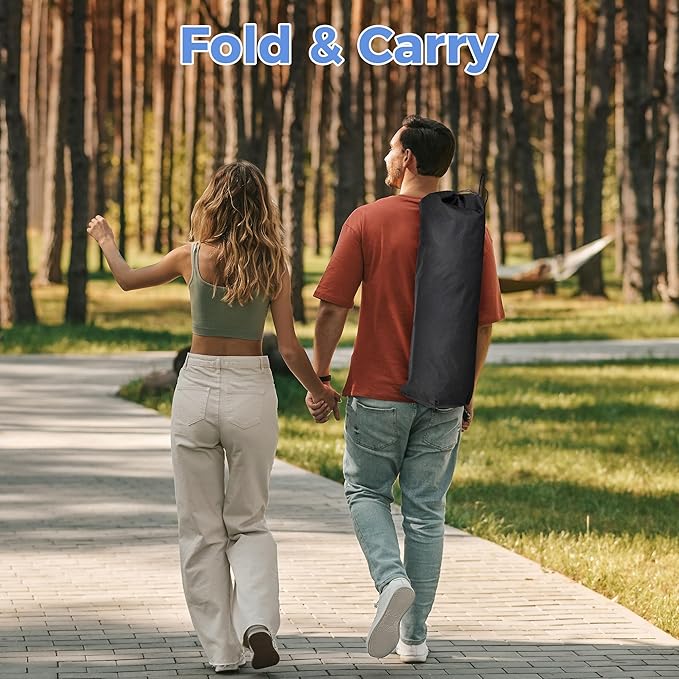 • Foldable Design: Convenient folding mechanism for easy storage when not in use, saving space. With a quick-open frame system and a durable carry bag, this camping chair can be packed into the bag soon.