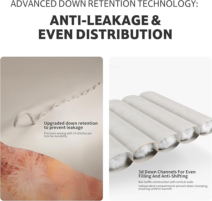 • C-SHAPED WRAPPED DESIGN: The sleeping pad adopts C-shaped wrapping design, U-shaped cap cover, YKK two-way zipper, and the ratio of upper and lower pieces is 6:4, allowing more down cover on the top of the body, keeping warm and comfortable performance of sleeping bags. Minimizes difficulty in thermal control during poor weather. 3D foot space allows the foot to move more freely