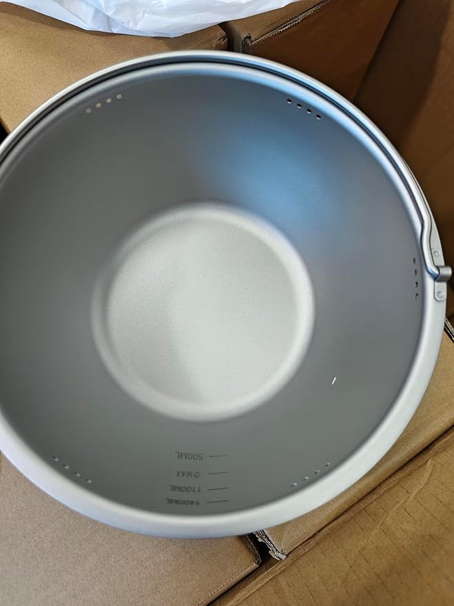 • Our largest capcaity titanium pot offering. 100% Titanium camping rice cooker pot 3200 ml with Lid and mesh bag. Simple rice cooking - use 1-1 ratio of rice to water and Fill bottom of pot with water first with 400ml of water.