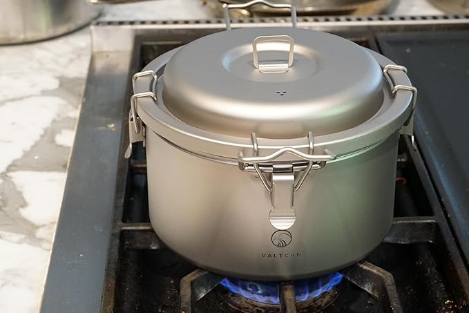 Valtcan 3200ml Titanium Rice Cooker Pot Home and Camping Backpacking Bento Lunch Box with locking Lid for Rapid Easy Rice Making 867g