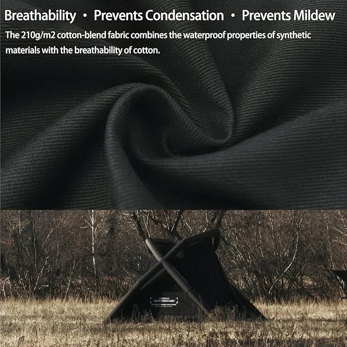 • Breathable Canvas Inflatable Tent: This inflatable camping tent is crafted from TC cotton fabric, offering superior durability, breathability, and eco-friendliness. Unlike Oxford tents, the TC cotton material reduces condensation, retains heat more effectively, and ensures a comfortable sleep by eliminating water condensation issues. With its sustainable design, this tent provides a more environmentally friendly alternative for those seeking a high-performance and reliable camping shelter.