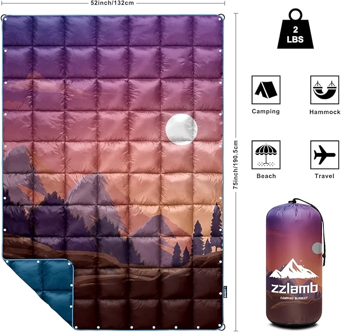 zzlamb Camping Blanket, Outdoor Lightweight Travel Blanket Puffy Portable Down Alternative, Windproof Warm Cloak with Snaps, Cozy Quilt Backpacking Picnic RV Plane Car Hammock Beach Climbing
