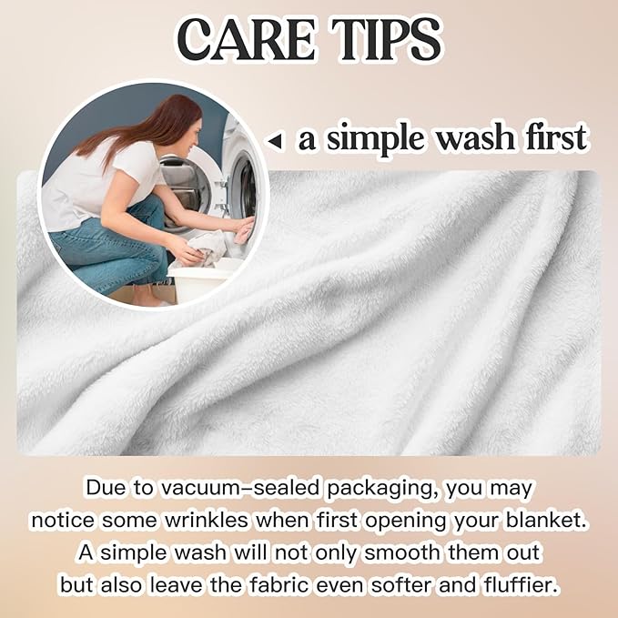 • Wrinkle-Free & Ready Instantly: Shipped in protective vacuum-sealed packaging, your blanket arrives guaranteed wrinkle-free and factory-fresh. No tedious unfolding or waiting – simply remove it from the bag, give it a quick shake or smooth by hand, and within seconds, it transforms into a lush, inviting haven of warmth.