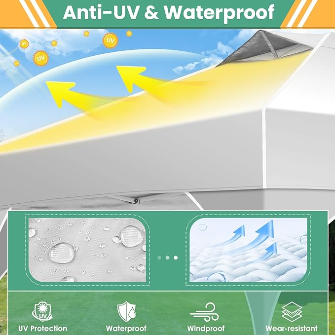 • 【Waterproof & UPF 50+ Protection】The 10x10 pop up canopy features premium 210D Oxford fabric that blocks 99% of harmful UV rays. This outdoor canopy tent provides reliable shade and waterproof protection with 2000mm water resistance. For longer lifespan, we recommend storing it when not in use.