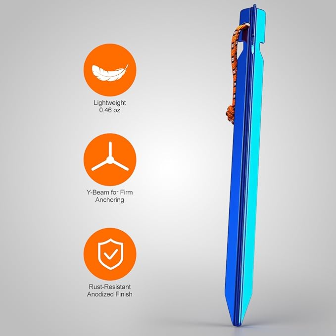 • 【8 Ultralight Tent Stakes】Made of 7000-series aluminum alloy. Strong yet lightweight—each weighs only 0.46 oz.