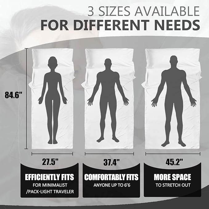 • Versatile Use: Our sleeping bag liner is the perfect addition to your outdoor sleep system or serves as a warm-weather ultralight sleeping bag. It's also the ideal companion for various scenarios. Whether you're staying in a hostel, enduring long bus rides, or embarking on plane journeys, this liner adds extra warmth and acts as a protective barrier.