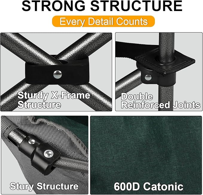 • Oversized Size & Seat Depth: Our folding camping chair adopts oversized size, the size is 33 x 28 x 37 inches when unfolded, and the seat depth is 22 inches. This design not only reduces the hanging of the legs, but also allows you to adjust your sitting posture freely, whether you are sitting for a long time or taking a short break, you can maintain a natural and comfortable posture.