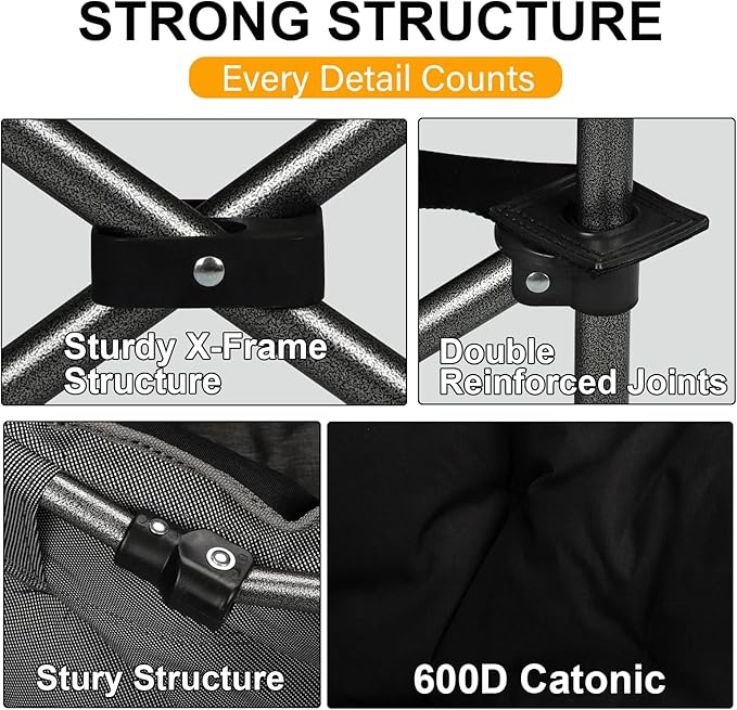 • Oversized Size & Seat Depth: Our folding camping chair adopts oversized size, the size is 33 x 28 x 37 inches when unfolded, and the seat depth is 22 inches. This design not only reduces the hanging of the legs, but also allows you to adjust your sitting posture freely, whether you are sitting for a long time or taking a short break, you can maintain a natural and comfortable posture.