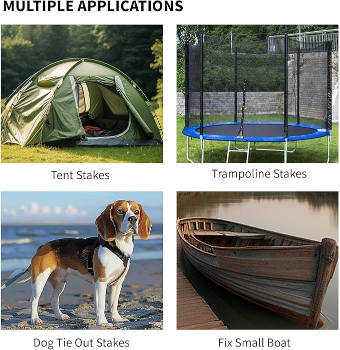 • 【Wide Range of Applications】Perfect for anchoring tents, canopies, tarps, pet leashes, garden structures, and more. A reliable solution for both temporary and long-term use.
