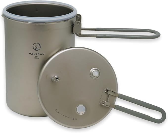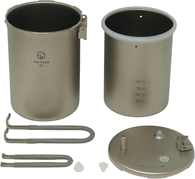 Valtcan 1800ml Titanium Pressure Rice Cooker Pot with Locking Lid | Lightweight Camping & Backpacking Cookware | Pure Titanium Bento Lunch Box | Rapid, Easy Rice & One-Pot Meals