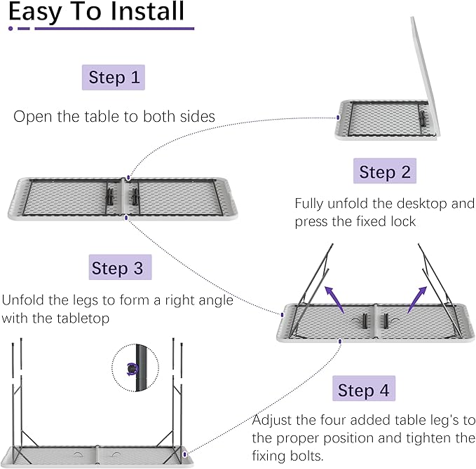 • Durable and Easy Maintenance - Constructed from a sturdy metal frame and a 1.4-inch thick, waterproof high-density polyethylene (HDPE) tabletop, this folding picnic table withstands the test of time and is remarkably easy to clean. Rounded edges enhance safety.
