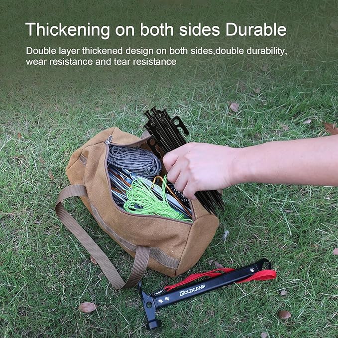 • 【COMPLETE SET】: Includes 8 heavy-duty metal tent stakes, a durable hammer, and a convenient canvas storage bag for easy organization and transport