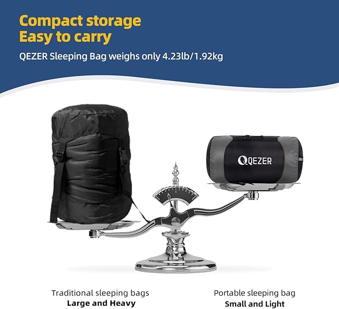 • 【Lightweight and Convenient】 The new graphene fabric has higher strength and lighter weight, with a total weight of only 4.23lb and a storage capacity of 17.32"×8.66". Winter sleeping bag is lightweight and easy to carry without any burden.