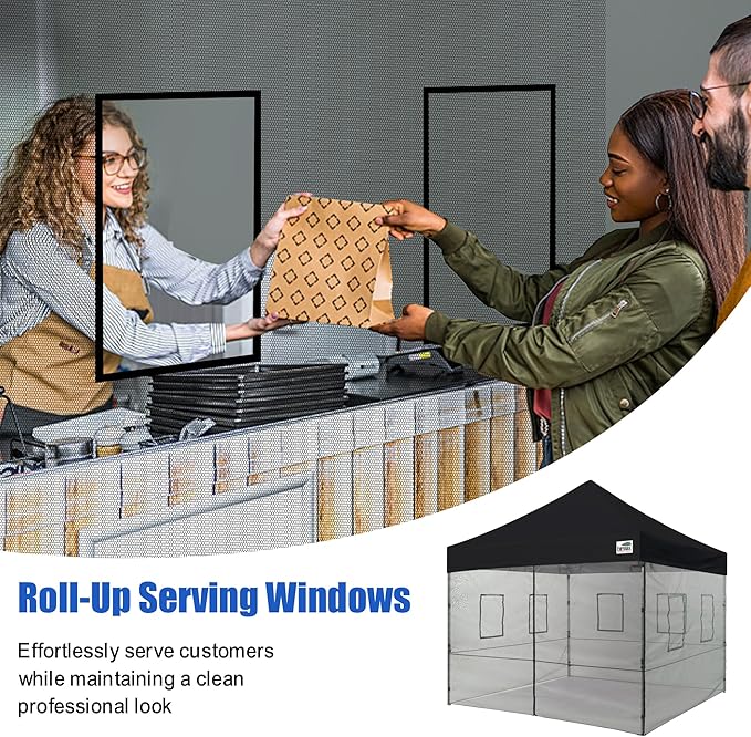 • BREATHABLE MESH WALL:Fullsided netting for all-round protection and provide excellent ventilation on sultry summer day, keep cool. The best choice for small business,3 panel with W/ windows and the back entry door.