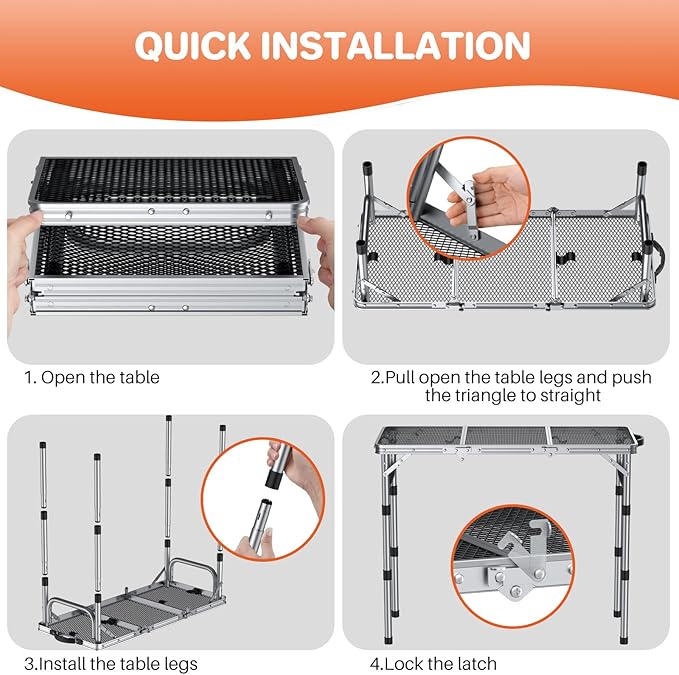 • 【Waterproof and Heat Resistant】Our outdoor grill table with the unique coated mesh table design that can avoid water accumulation and rusting. And it is designed to withstand high temperatures that makes it the ideal choice for outdoor barbecues and camping trips