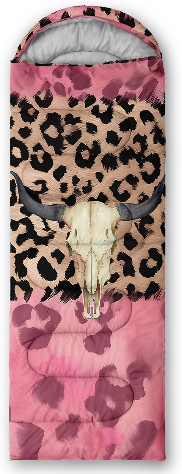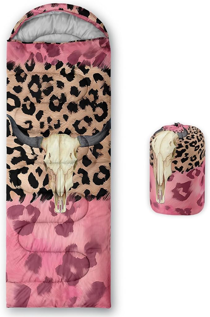 • Unique Bull Skull Design:This Bull Skull pattern sleeping bag is made of 3D digital printing with vibrant colors and patterns,size: 31W x 90L inches,temperature range: 32℉-77℉ (0℃-25℃),it also also have a weather resistant waterproof design to keep you warm and prevent you from any dampness,can be used in 3 seasons