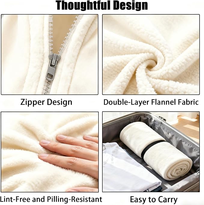 • 【2-in-1 Elegant Wearable Design】- Blanket Meets Poncho: Zip-up shawl + double-layer flannel = versatile warmth! Wear it as a stylish bed jacket, reading poncho, or wrap into a lap blanket. Ideal for sofa lounging, office work, cruises, or as a wheelchair blanket for seniors.