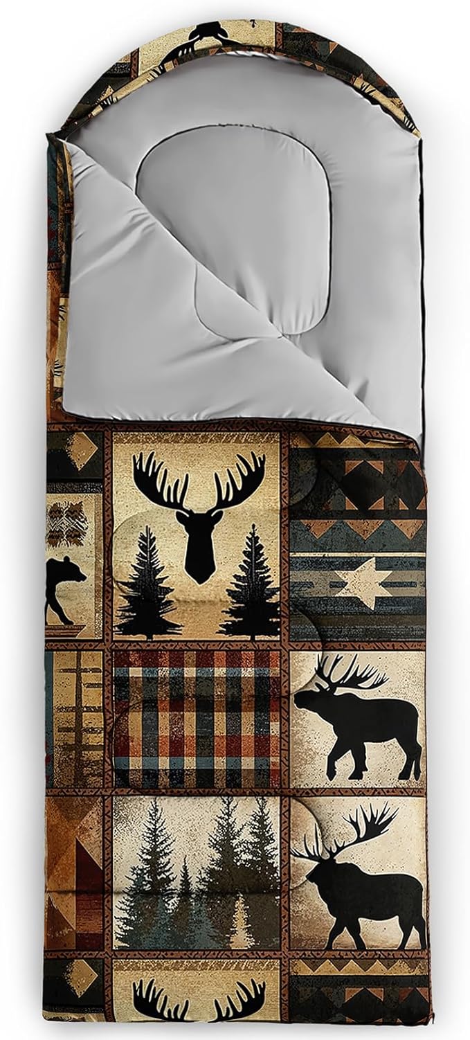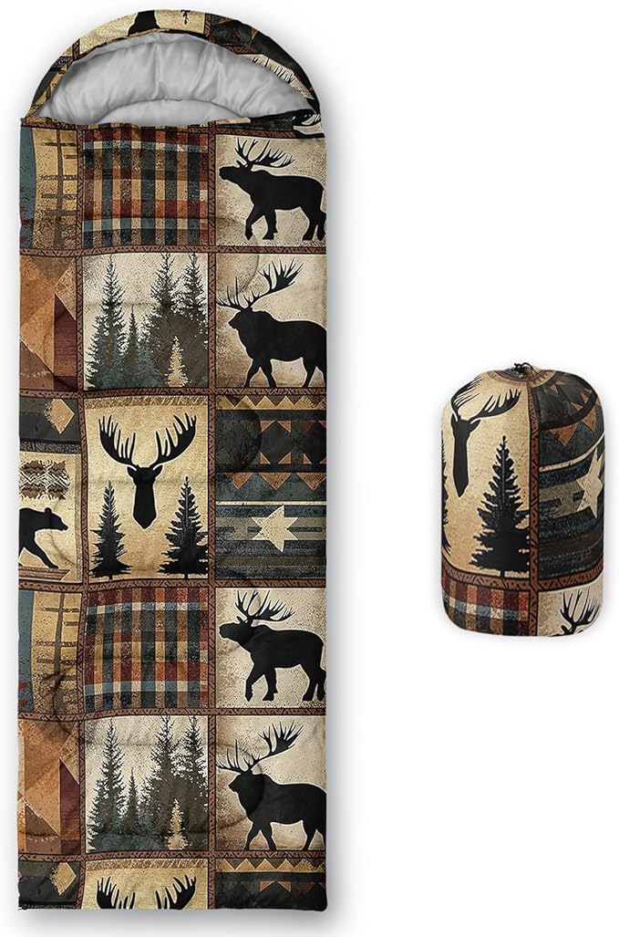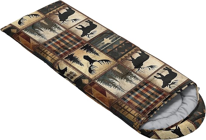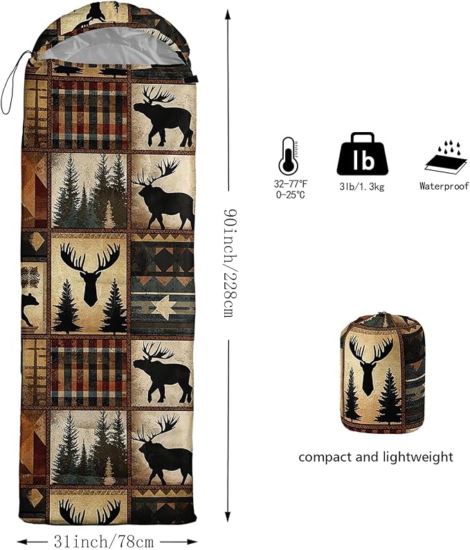 • Unique Deer Design:This Deer pattern sleeping bag is made of 3D digital printing with vibrant colors and patterns,size: 31W x 90L inches,temperature range: 32℉-77℉ (0℃-25℃),it also also have a weather resistant waterproof design to keep you warm and prevent you from any dampness,can be used in 3 seasons