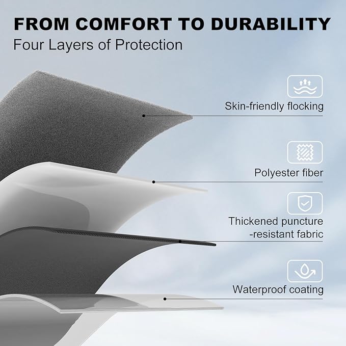 • EASY to USE AND CARRY - A car air pump is provided, which can be connected to the cigarette lighter to inflate quickly when outdoors, and it can be fully charged within 3 minutes. When no longer in use, it can be quickly deflated through the three widened vents. After being folded, it will be put into the gift storage bag, which is convenient to carry and does not take up space.