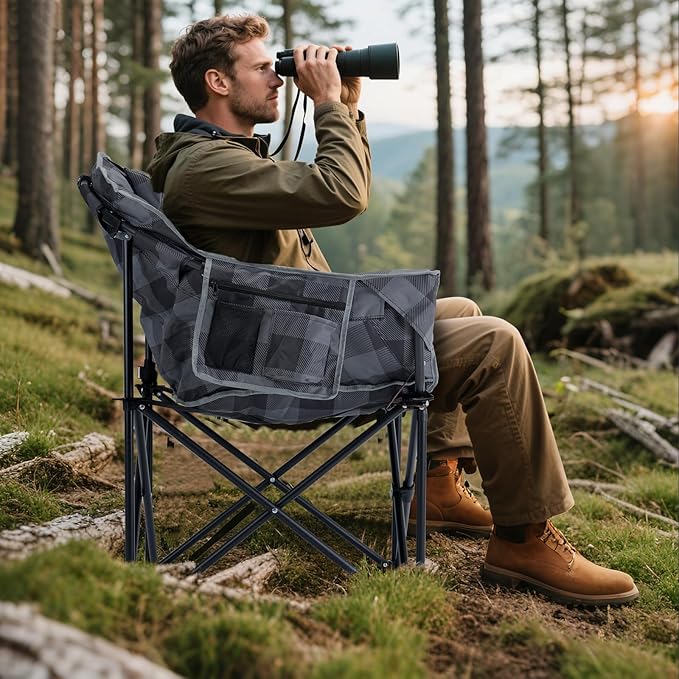 • STURDY FRAME: The heavy-duty camping chairs made of high quality material and sturdy construction which can support up to 500 lbs. 600D Oxford fabric with plenty of padding, sturdy and soft. Extra straps at the bottom enhance the tear resistance of the fabric. 19MM reinforced pipe guarantees safety and quality