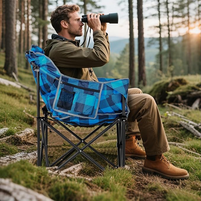 • STURDY FRAME: The heavy-duty camping chairs made of high quality material and sturdy construction which can support up to 500 lbs. 600D Oxford fabric with plenty of padding, sturdy and soft. Extra straps at the bottom enhance the tear resistance of the fabric. 19MM reinforced pipe guarantees safety and quality